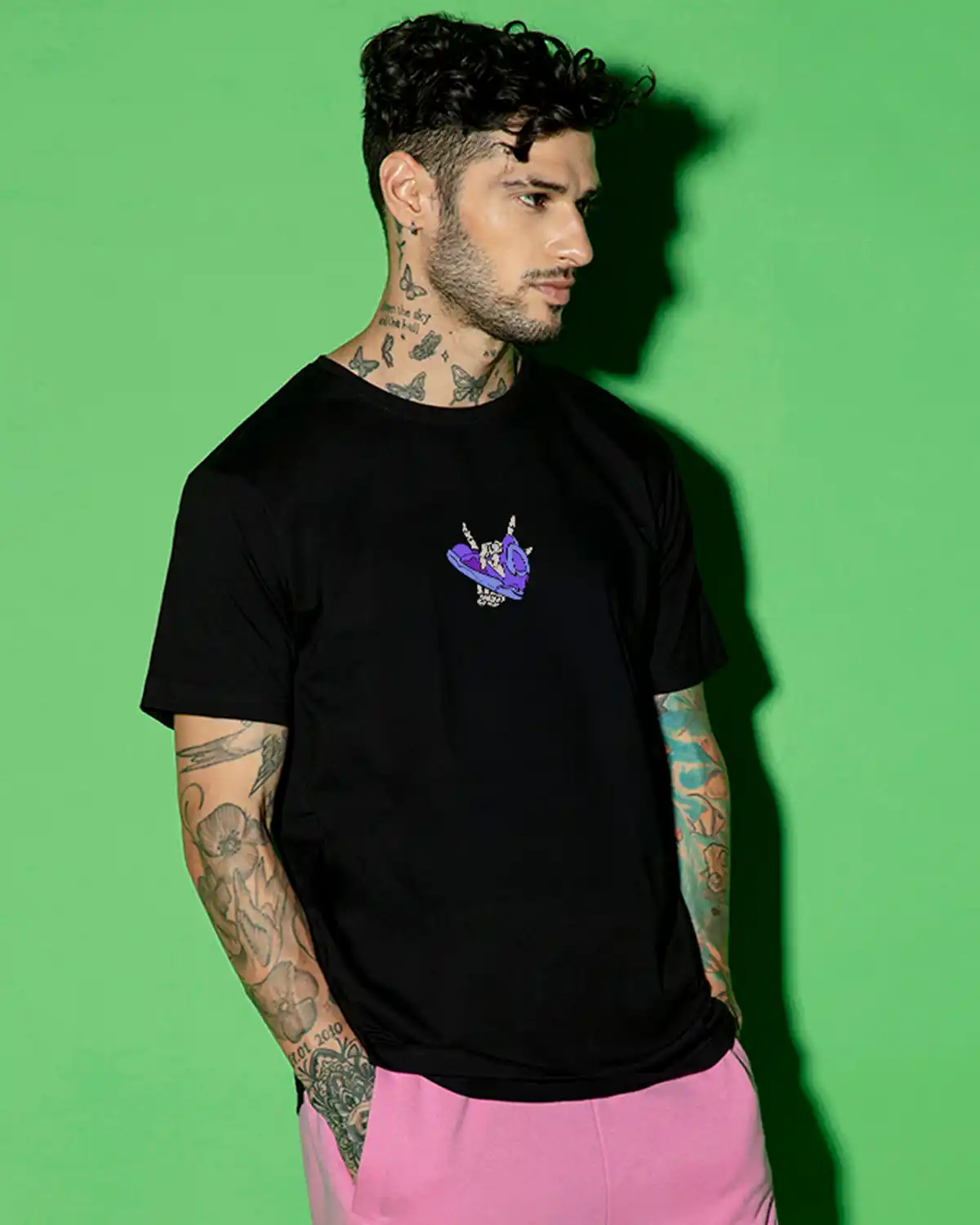 Featuring a classic black color with a regular fit, this T-shirt offers a timeless and versatile look that pairs easily with any outfit. The round neck design and half sleeves add to its casual appeal, making it perfect for daily wear, lounging, or casual outings.