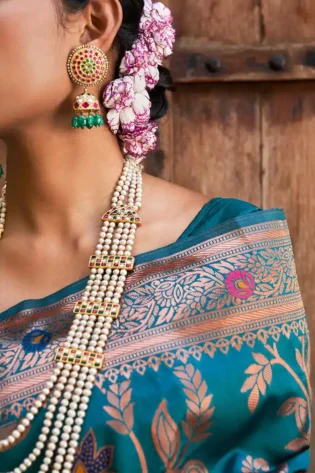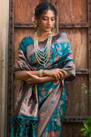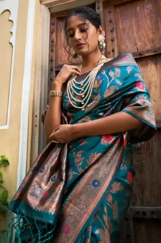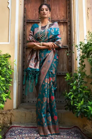 Janasya Women’s Silk Blend Floral Woven Design Jacquard Saree with {Blouse Piece}