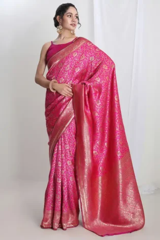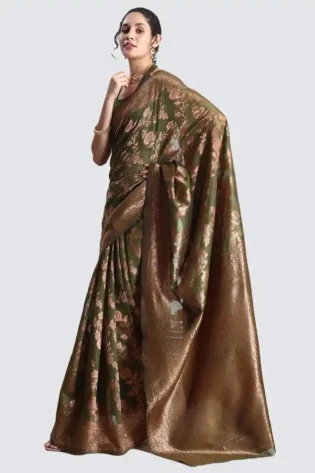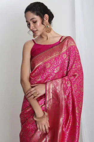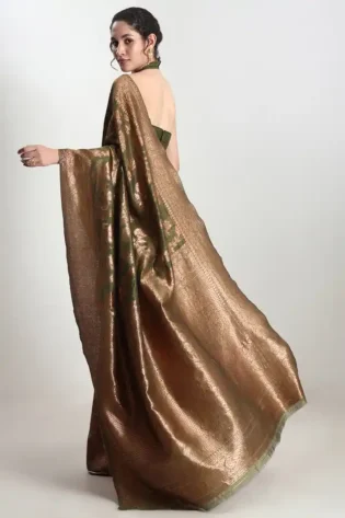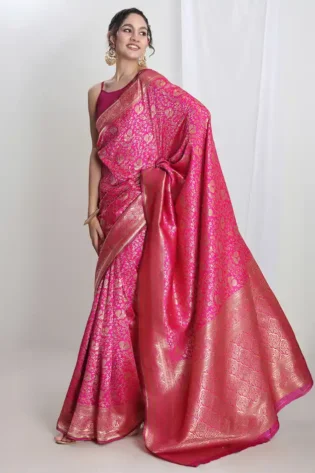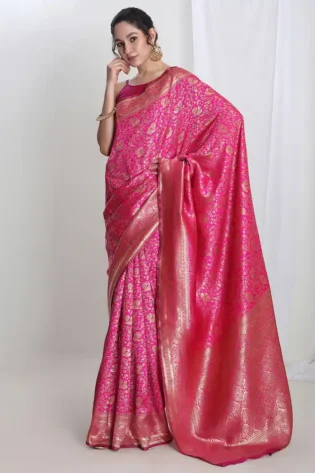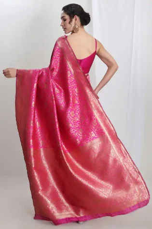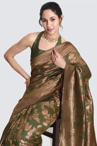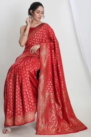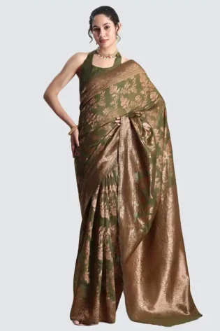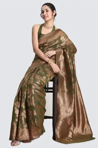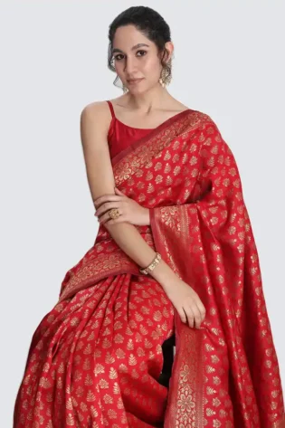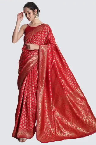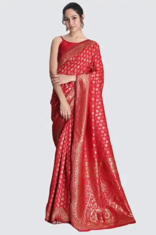 Janasya Women’s Banarasi Design Saree with {Unstitched Blouse}
